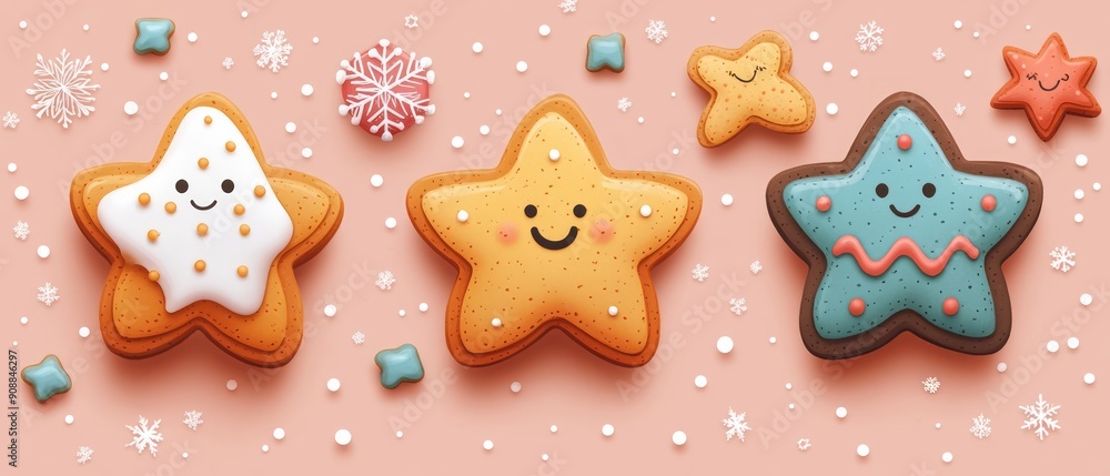 Delightful star-shaped cookies decorated with icing and smil Wallpaper
