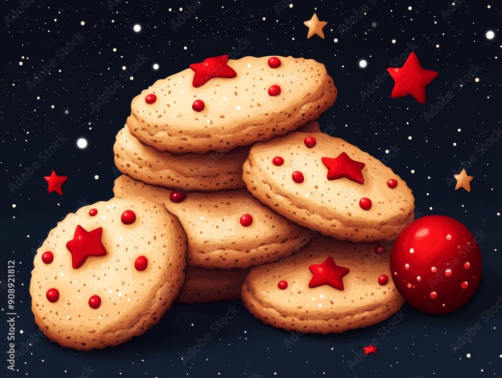 A festive stack of decorated cookies with red stars and bead Wallpaper