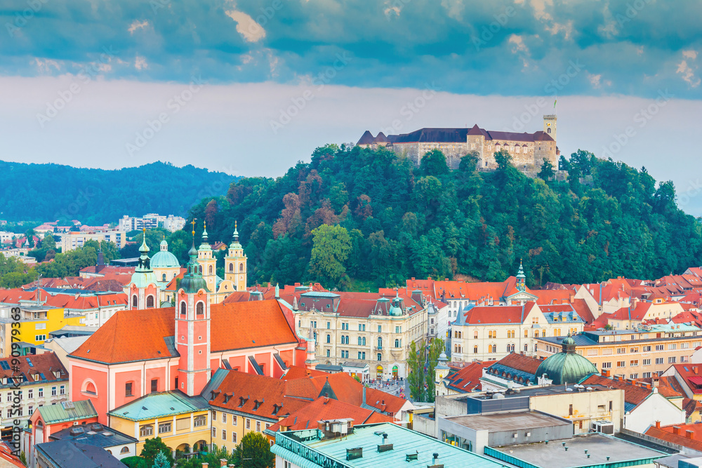 Cityscape of Ljubljana (Slovenia) with the Ljubljana Castle