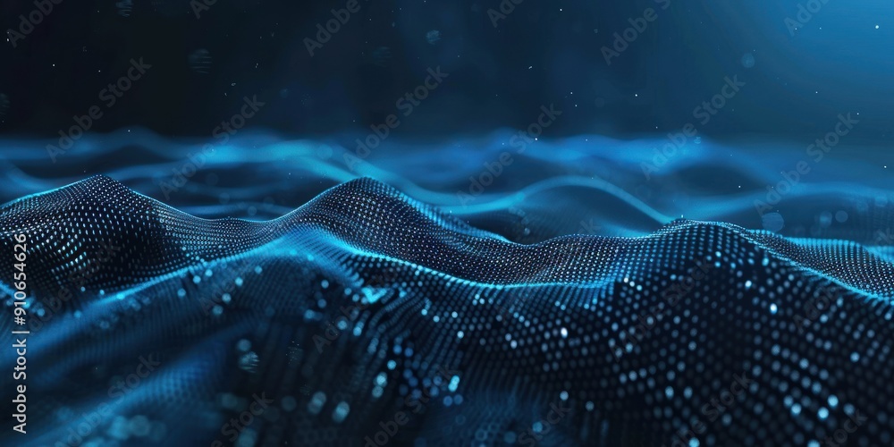 Digital technology wave background: abstract motion of glowing dots texture with vibrant defocused particles, futuristic cyber-inspired design for innovation and tech concepts.
