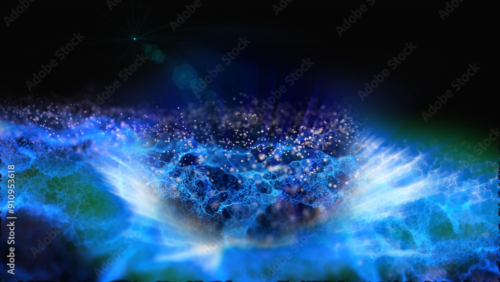 Abstract glowing neon light design with dynamic curves and particles