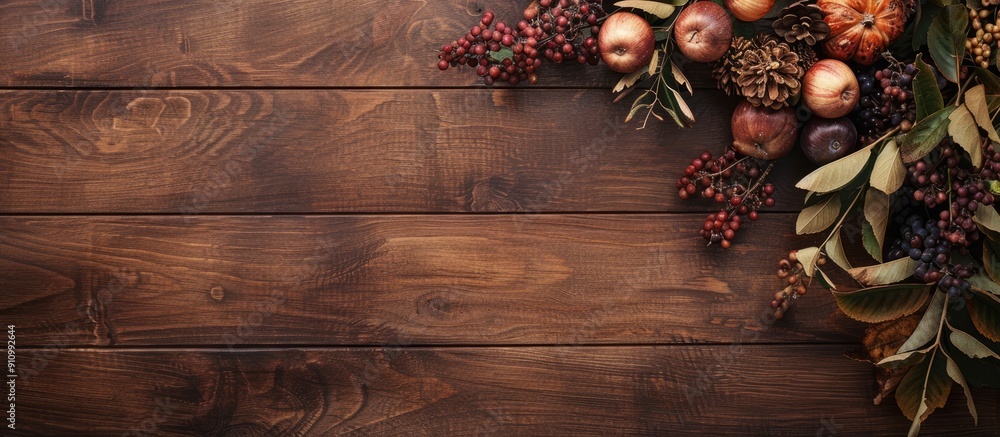 An Autumnal Arrangement On A Wooden Table With Wallpaper Mural - Decorly Solutions | Decorly Solutions
