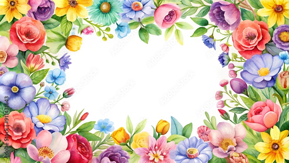 Vibrant Watercolor Spring Flowers Frame Generative Ai Wallpaper Mural - Decorly Solutions | Decorly Solutions