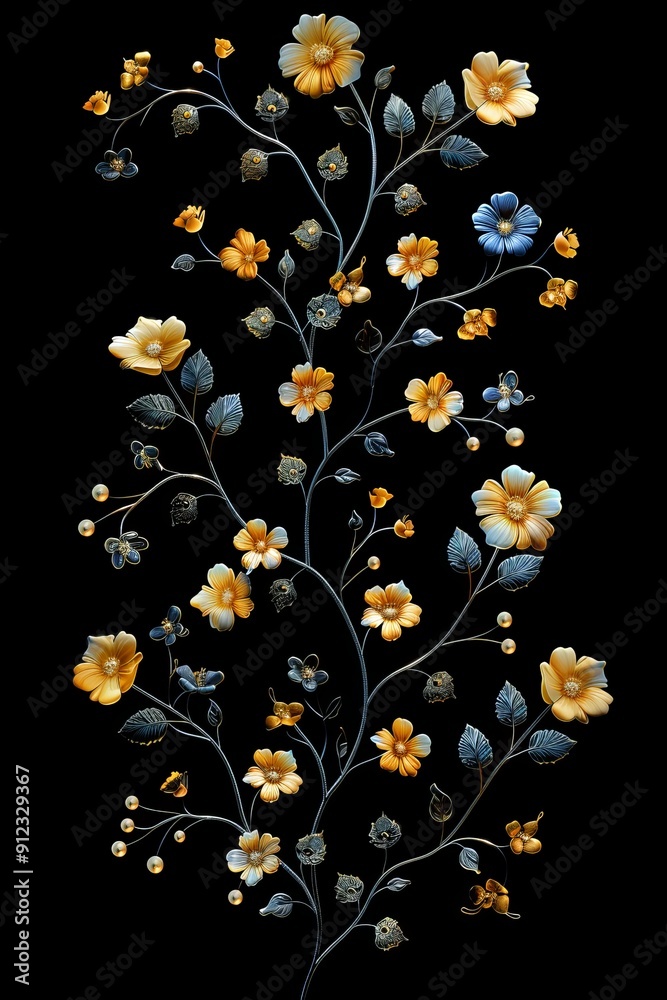 Beautiful Floral Painting On Black Background Wallpaper Mural - Decorly Solutions | Decorly Solutions