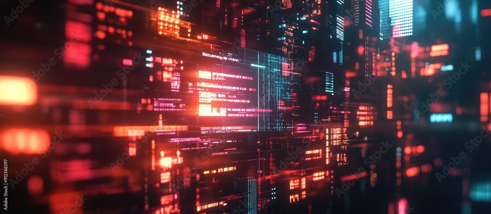 Abstract digital cityscape with red and blue lights