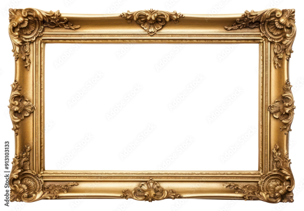 Gleaming Gold Frame on Pure White Canvas. On a Clear PNG or White Background.