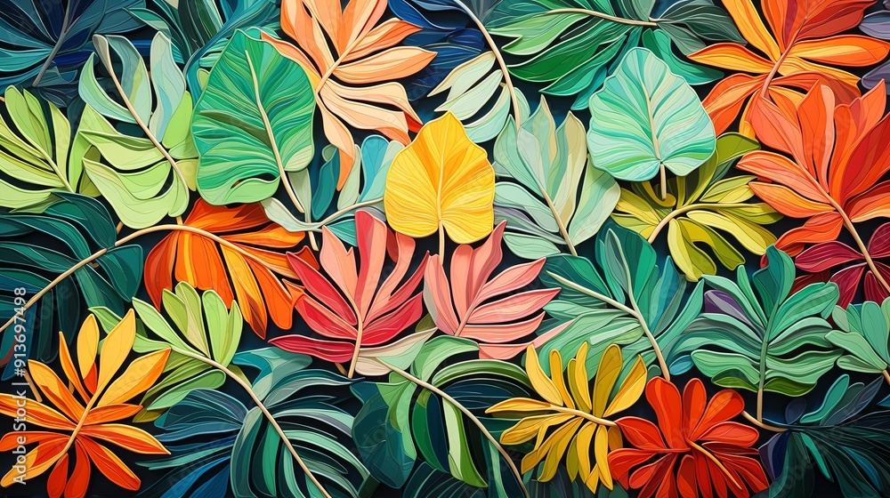 Vibrant Colorful Tropical Leaves Background Pattern Wallpaper Mural - Decorly Solutions | Decorly Solutions
