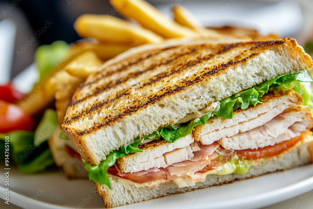 Close Up Sandwich On The Dish With Plain Wallpaper Mural - Decorly Solutions | Decorly Solutions