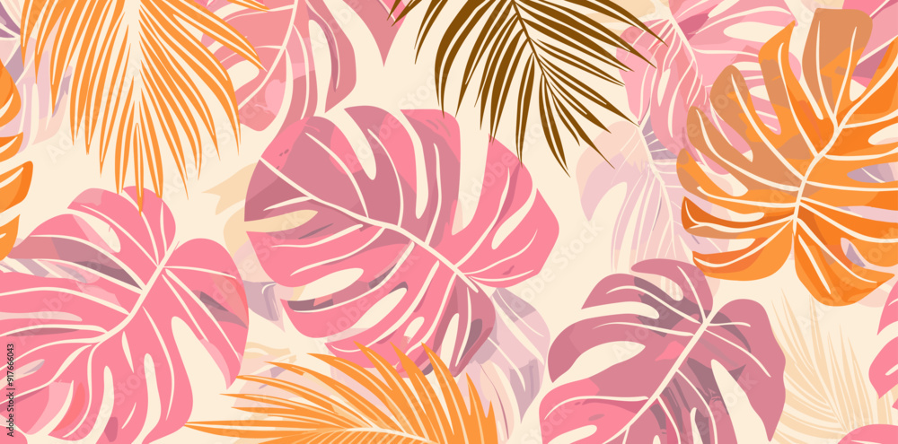 A Seamless Pattern Featuring Vibrant Tropical Leaves In Wallpaper Mural - Decorly Solutions | Decorly Solutions