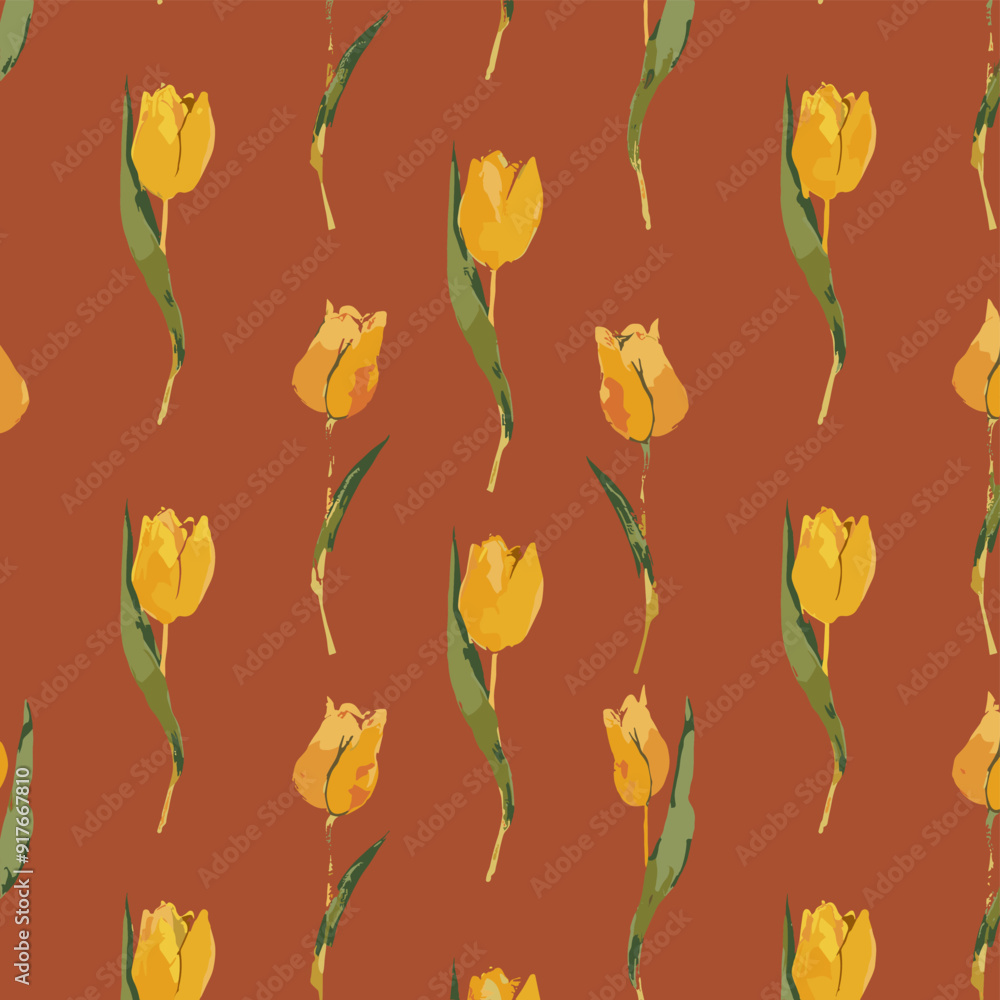 A seamless pattern of yellow tulips on a brown background pa Wallpaper