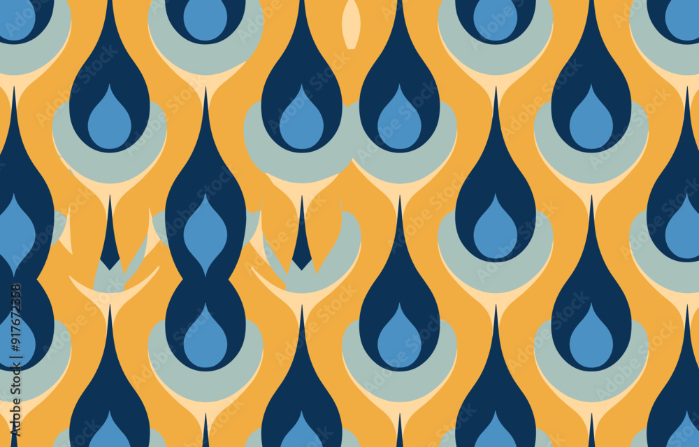 Retro-inspired Seamless Pattern With Teardrop Shapes In Shades Wallpaper Mural - Decorly Solutions | Decorly Solutions