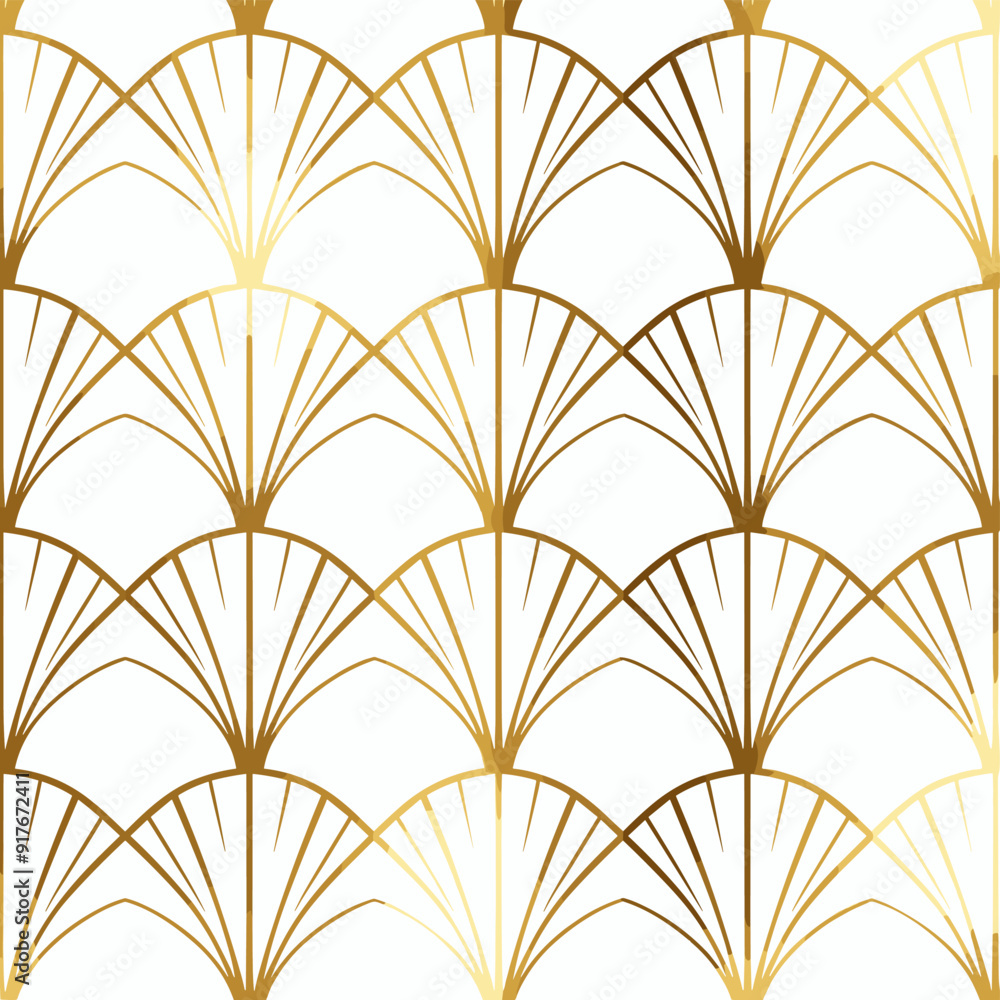 Seamless Art Deco Pattern with Golden Fan-Shaped Motifs Wallpaper