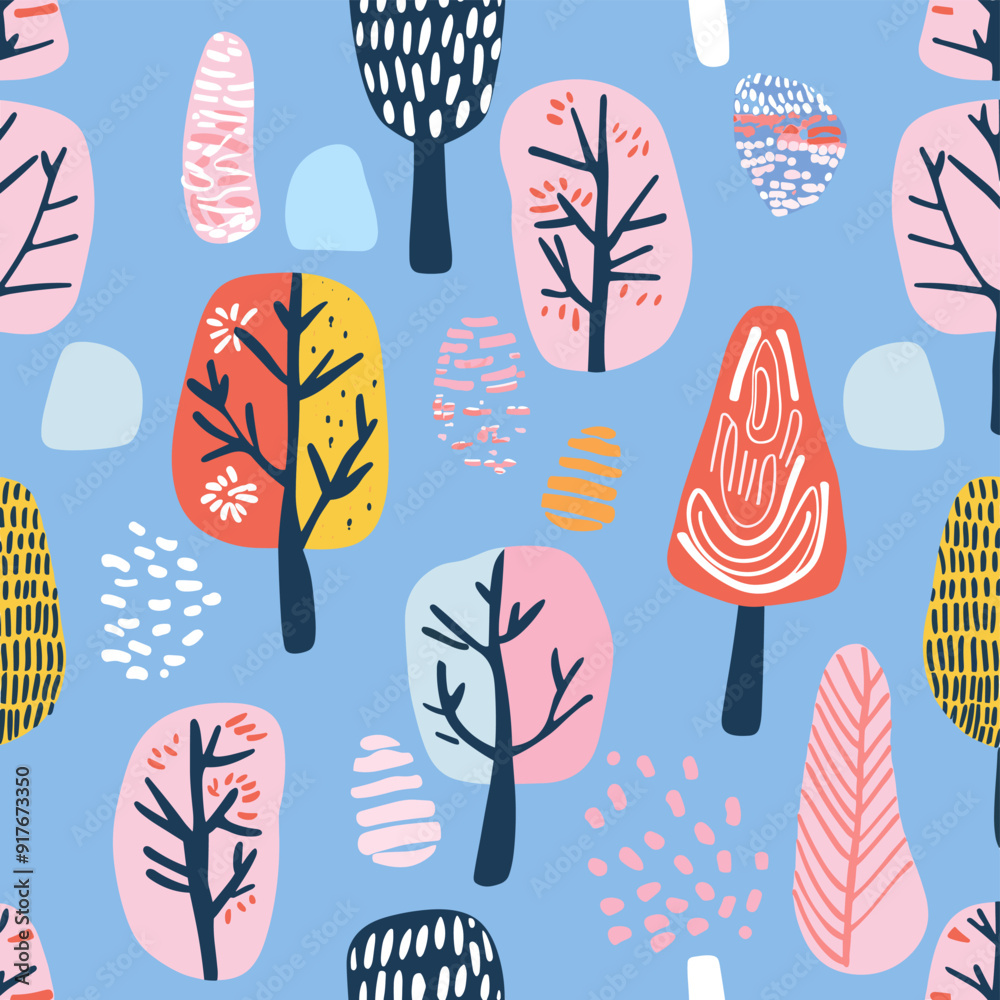 Abstract seamless pattern with colorful trees and geometric Wallpaper