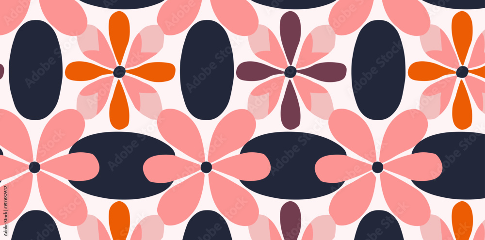 Abstract Floral Pattern With Overlapping Pink Orange And Wallpaper Mural - Decorly Solutions | Decorly Solutions