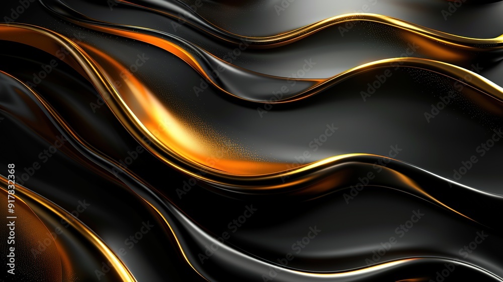 Abstract gold and black wavy background.
