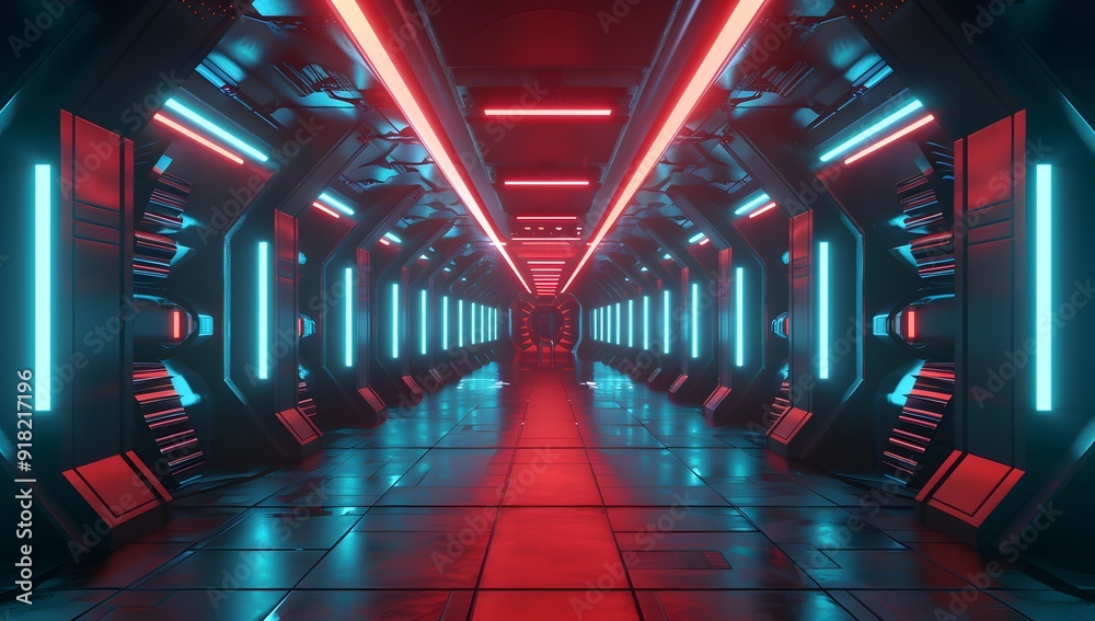 3d Render Abstract Futuristic Background With Neon Blue Wallpaper Mural - Decorly Solutions | Decorly Solutions