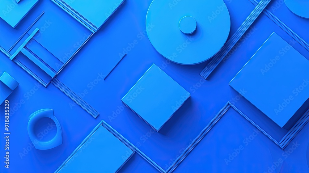 A Gradient Blue Background With Minimalist Geometric Shapes Wallpaper Mural - Decorly Solutions | Decorly Solutions