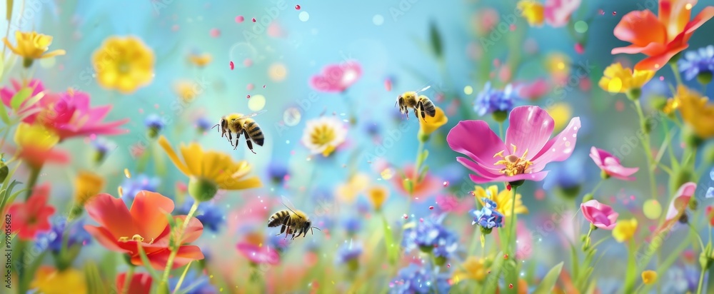 Spring Symphony: Bees Blooms Banner