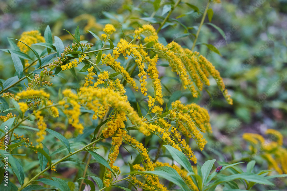 Beautiful yellow goldenrod flowers blooming Wallpaper