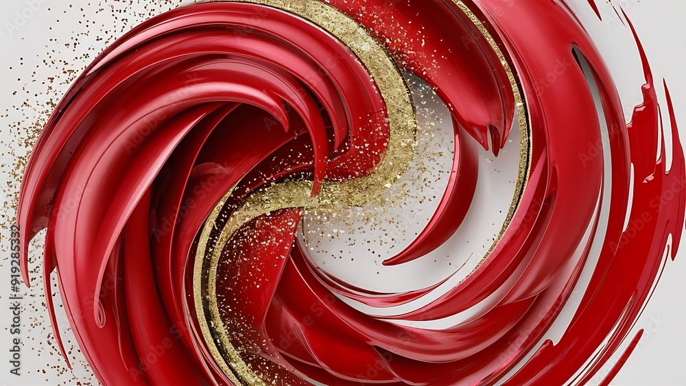 Beautiful Crimson Paint Swirls With Gold Glitter Contemporary Wallpaper Mural - Decorly Solutions | Decorly Solutions