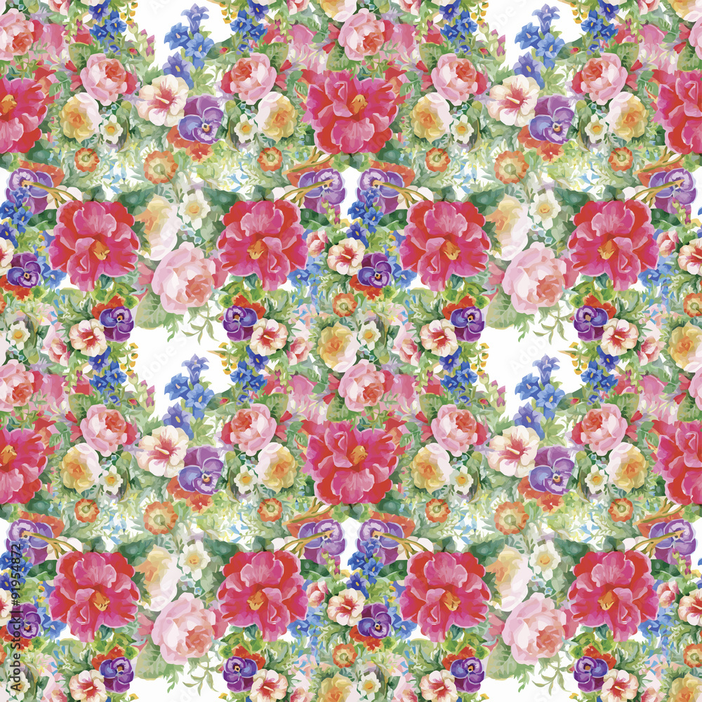Seamless pattern with Beautiful flowers, Watercolor painting