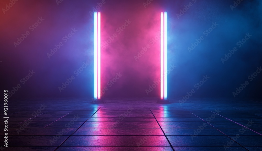 There Is An Empty Stage With Neon Lights Wallpaper Mural - Decorly Solutions | Decorly Solutions