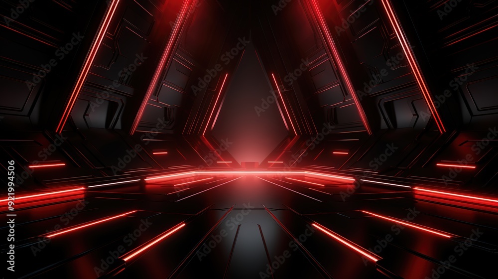 Futuristic black and red tunnel with glowing lines.