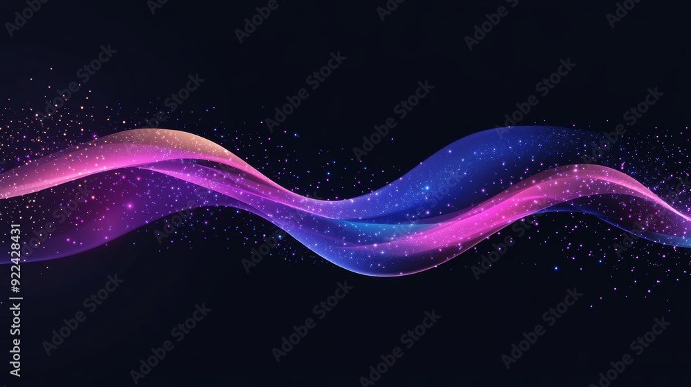 Glowing abstract wave in a dark shimmering motion creating a magical space light effect 2D cartoon techno inspired background design