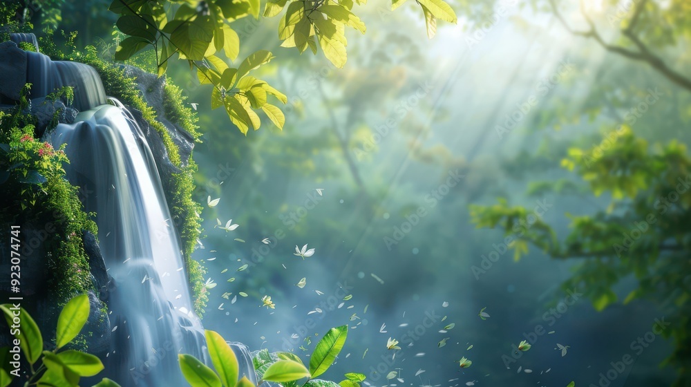 Majestic forest waterfall: A cascading waterfall surrounded Wallpaper