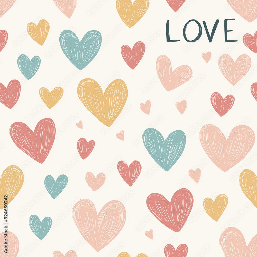 Hand-drawn Hearts In Pastel Colors On A Light Wallpaper Mural - Decorly Solutions | Decorly Solutions
