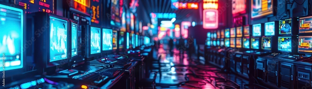 A Blurred Image Of A Vibrant Event Showcasing Illuminated Screens And Soft Bokeh Lights, Creating A Lively Atmosphere.