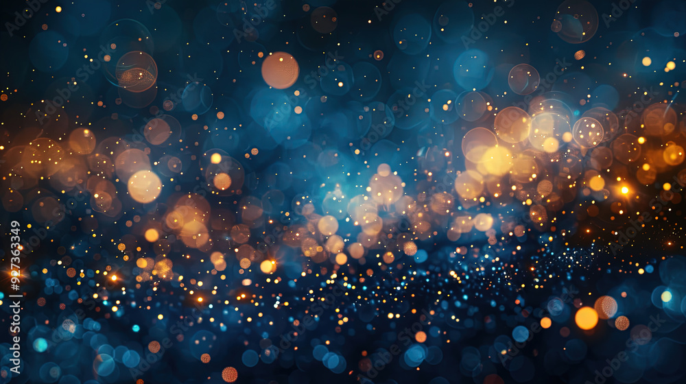 Golden and blue sparkling lights create magical atmosphere, perfect for celebrations and festive occasions. shimmering particles dance in air, evoking joy and wonder