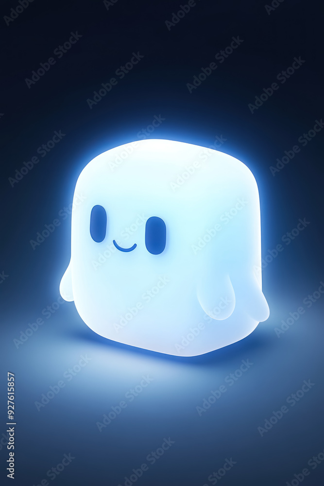 Cute Glowing Blue Ghost On Dark Background Wallpaper Mural - Decorly Solutions | Decorly Solutions