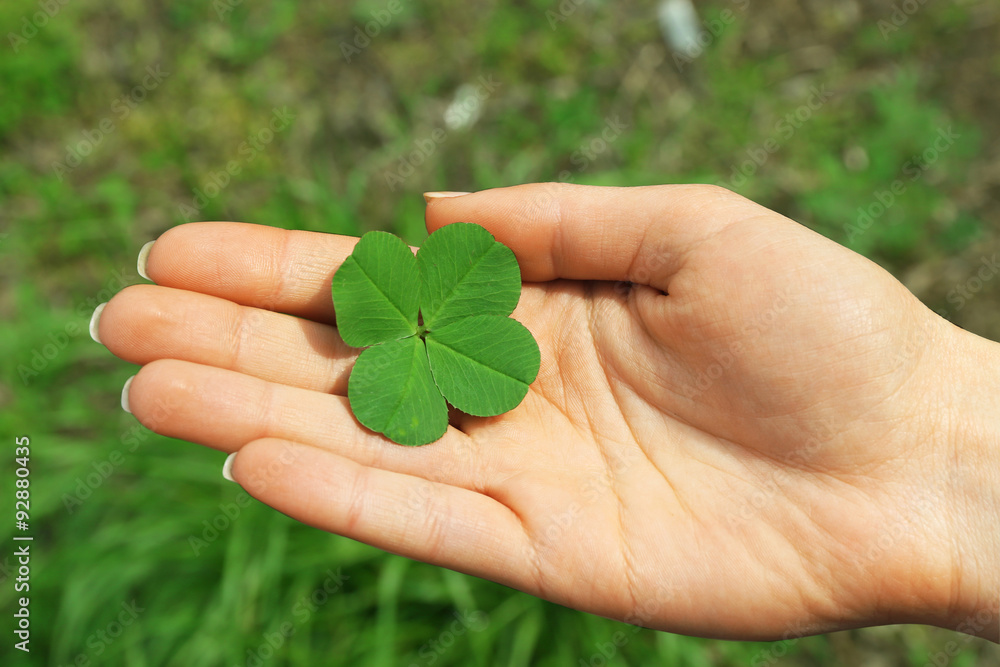 Female Hand With Four Leaves Clover Closeup Wallpaper Mural - Decorly Solutions | Decorly Solutions