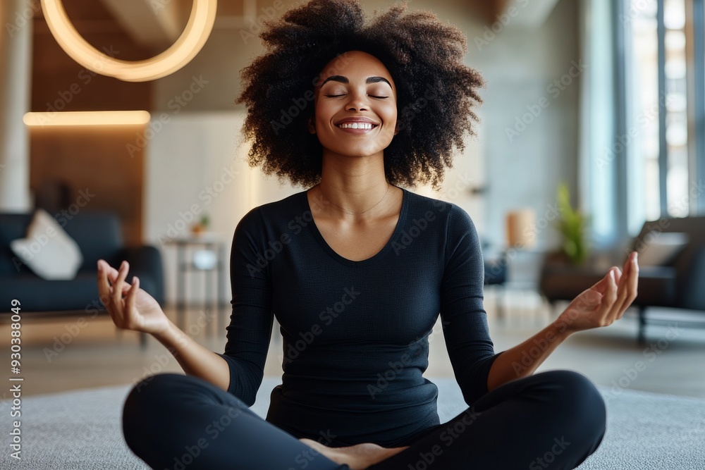 Confident Young Woman With Afro Hair Practices Meditation Wallpaper Mural - Decorly Solutions | Decorly Solutions