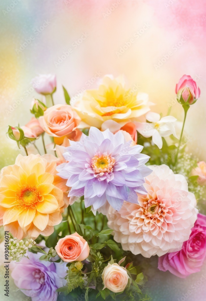 Vibrant Watercolor Flower Arrangements Illuminated Soft Lighting Stunning Wallpaper Mural - Decorly Solutions | Decorly Solutions