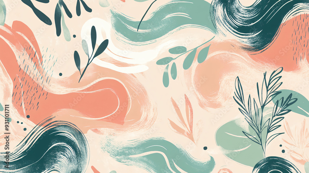 Colorful Abstract Pattern With Soft Waves And Botanical Wallpaper Mural - Decorly Solutions | Decorly Solutions