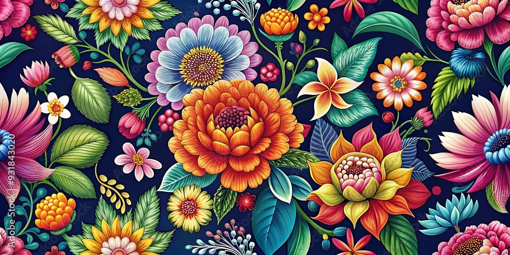 Seamless embroidery floral pattern with intricate designs and vibrant colors, embroidery, floral, seamless, pattern