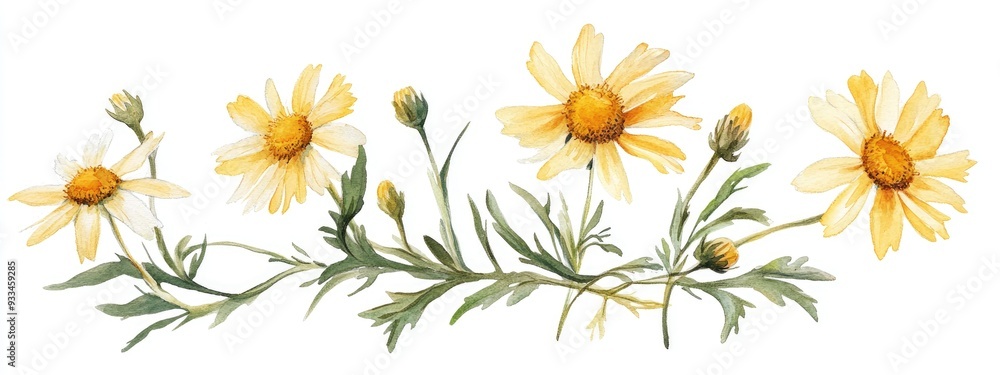 Golden Chamomile Meadow Flower Watercolor Illustration Hand Painted Wallpaper Mural - Decorly Solutions | Decorly Solutions
