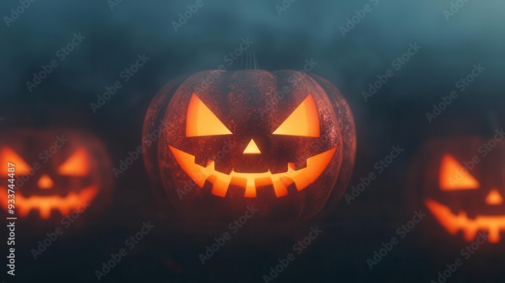 Blurred Jack-o -lantern Faces Floating In A Dark Wallpaper Mural - Decorly Solutions | Decorly Solutions