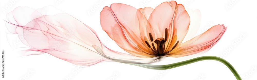 Transparent Pale Pink Tulip Hand Painted In Watercolor Wallpaper Mural - Decorly Solutions | Decorly Solutions