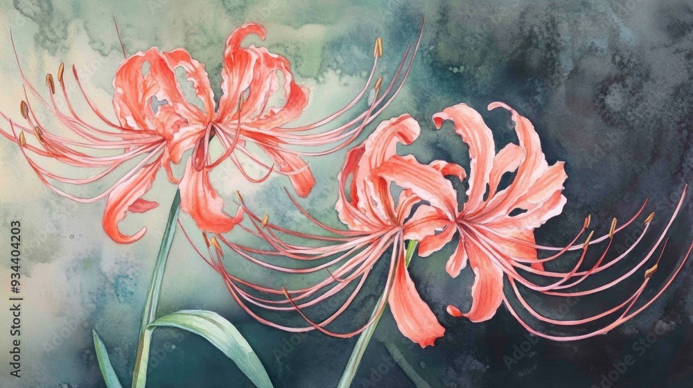 Watercolor Depiction Of Spider Lily Wallpaper Mural - Decorly Solutions | Decorly Solutions