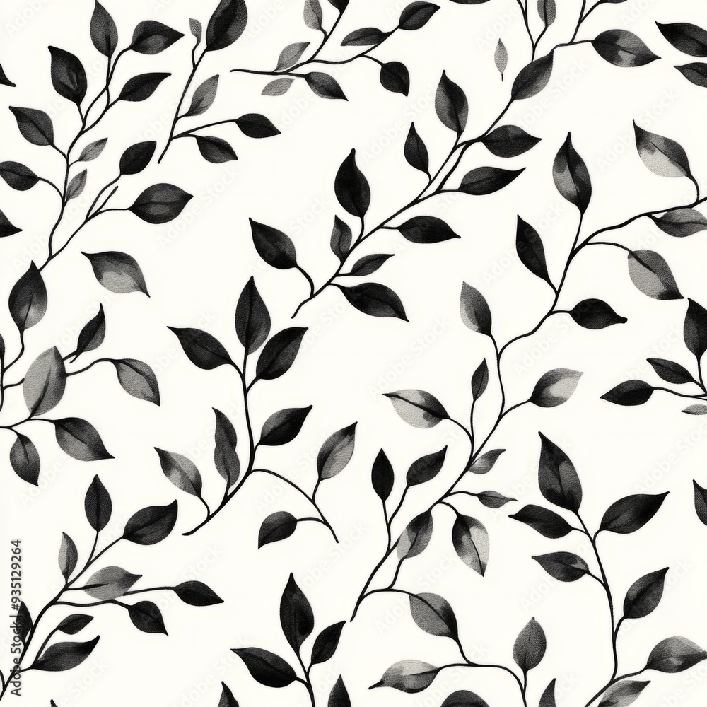 Seamless Pattern With Leaves And Branches In Black Wallpaper Mural - Decorly Solutions | Decorly Solutions