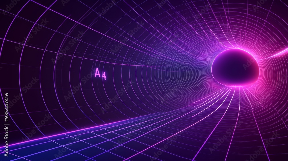 Purple Glow Portal With Grid Tunnel Effect.
