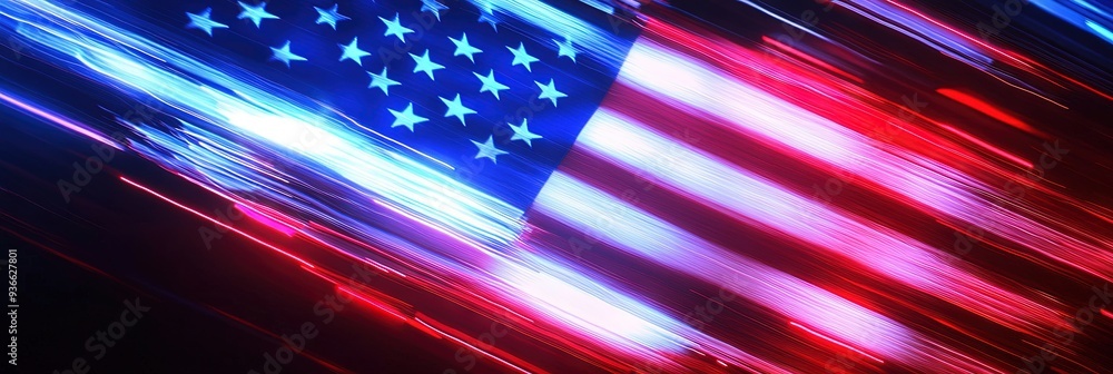 Neon American Flag Glowing Red White Blue Wallpaper Mural - Decorly Solutions | Decorly Solutions