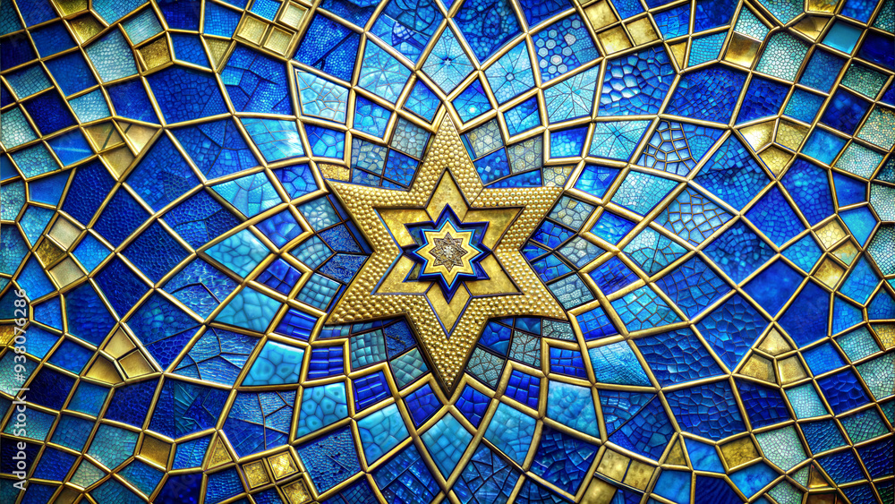 Vibrant Blue Stained Glass Mosaic: Abstract Art Background Texture