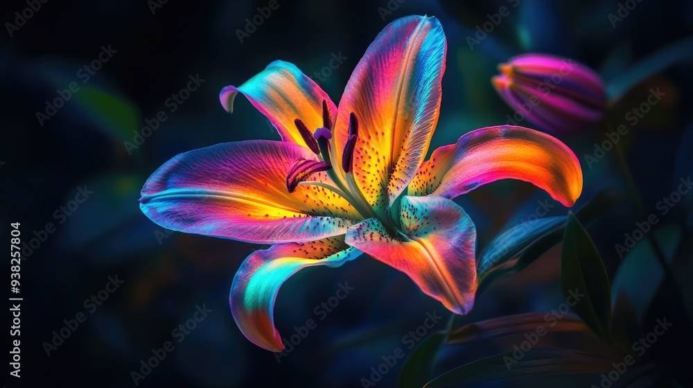 A Stunning Neon Lily Bloom With Vibrant Colors Wallpaper Mural - Decorly Solutions | Decorly Solutions
