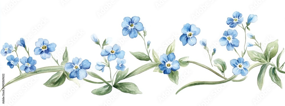 Watercolor Illustration Of Forget Me Nots On A Wallpaper Mural - Decorly Solutions | Decorly Solutions