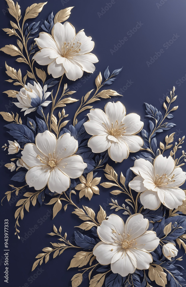 Vintage Royal Navy Blue With Elegant White And Wallpaper Mural - Decorly Solutions | Decorly Solutions