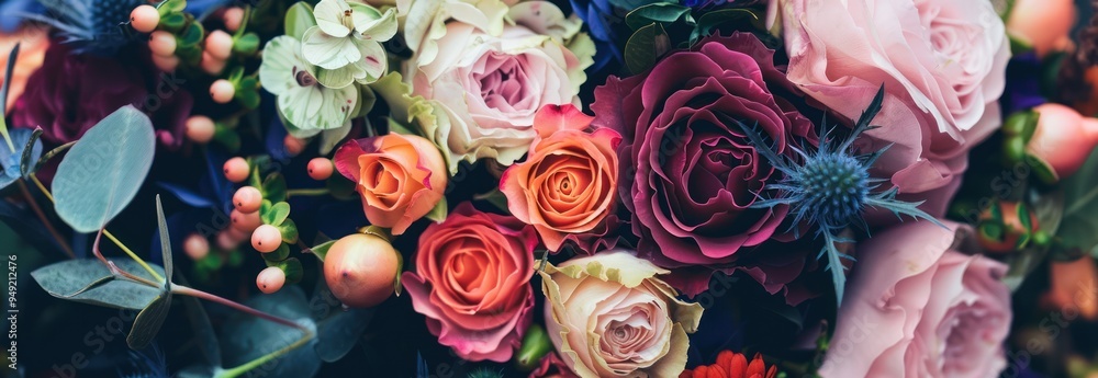 Beautiful Pink and Red Roses Bouquet Background with Dreamy Floral Details
